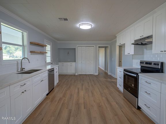 Welcome to this charming, fully remodeled 3-bedroom, 2-bath home nestled on an expansive lot in the heart of Church Point, LA that has been recently remodeled. The sunlit interiors radiate warmth, showcasing new flooring, fresh paint, and completely updated kitchen and bathrooms. This beautifully maintained residence boasts an inviting layout with spacious living areas, ideal for both relaxation and entertaining. The generously sized lot offers endless possibilities for outdoor enjoyment, whether you envision a vibrant garden, play space, or an expanded outdoor living area. A highlight of the property is the charming 15x30 cottage, perfect for accommodating guests, creating a home office, or using as additional storage. Experience the tranquility of small-town living with convenient access to local amenities. Your serene retreat is ready to welcome you home!