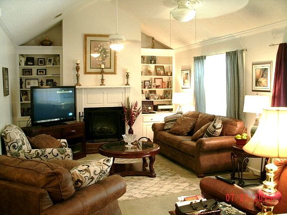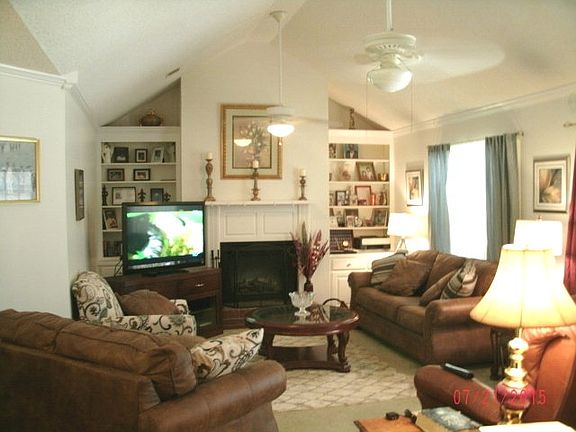 Unique house plan has Open-Floor-Plan. Brand New Stainless Appliances in the Kitchen. The master suite is separated from the other 2 bedrooms. Master suite has a Shower & separate Soaking Tub. An inviting Family Room with bookshelves, high ceilings and fireplace. Glass doors lead out to the rear wooden Deck. Wooden Storage Bldg. Enclosed double garage for entertaining or game room. Private Street; Cul de Sac.