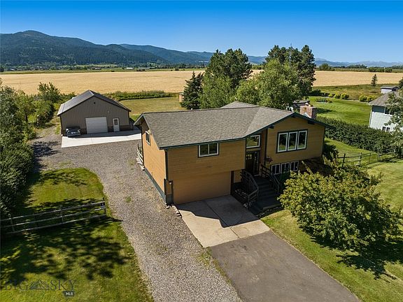 Beautiful home with shop available on almost an acre in South Bozeman! The main floor features an open and updated kitchen/ living/ dining area with vaulted ceilings, woodstove, wood floors, new Anderson windows, access to large deck and yard, 2 bedrooms, walk in closet, and full bath. Additional living area with fireplace, 3rd bedroom 3/4 bath, laundry and access to attached 2 car garage on lower level. Don't miss the large fenced yard, newer 32ft X 48ft heated shop with 1/2 bath and 2 roll up doors, additional parking pads, garden area, and RV hookups. This coveted south Bozeman location between town and Gallatin Gateway has light covenants, easy access to trailheads, spectacular views in all directions and more.