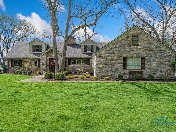 Stunning view of Maumee River. Beautiful Patio offers island & River view. Much attention to landscaping, path to river is asphalt for easy access to Water, water is normally 3-5 ft deep. Views from Master, Livingroom, dining room & sunroom, as well as Upper Family area and 2 bedrooms. Roof has 50 yr transferable warranty, installed in 2017. Master bedroom has room for a peaceful spot to read or just enjoy the view. Fountain outside the main living room picture window adds to the serene setting. The view is of the island & St. Rose Parrish in downtown Perrysburg. This is a unique opportunity.