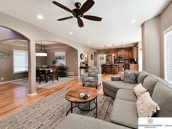 This immaculate home in Elkhorn's Windgate subdivision is listed to find its new owner nearly overnight! Priced slightly below neighboring homes, yet boasting some of the best property features, including stunning hickory hardwood floors throughout the main level & new carpet throughout the 2nd floor. This rare find is now available for your viewing pleasure. Plenty of natural light flow throughout the open and airy layout; you'll love the beautiful birch kitchen cabinetry, walk-in pantry, granite counters, and stainless steel appliances including gas range. Double french doors lead you to a bonus room off the kitchen-often used as a den or playroom. The 2nd level laundry has convenient primary bath access. 2 bedrooms with Jack 'n Jill bath, and the 4th with a private full bath. The primary bedroom is your well-deserved retreat with a separate sitting room, huge walk-in closet, double sinks, whirlpool tub & tile walk-in shower.
