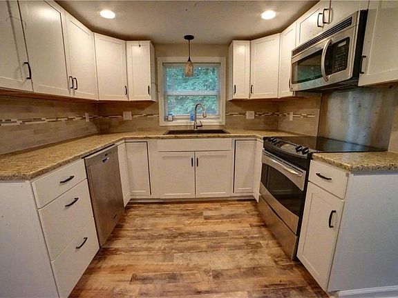 Beautiful park like setting, fully remodeled two bedroom one bath bungalow is a must see. undated throughout, New windows, new cabinets, new plumbing and new electrical upgraded to 200 amp service. New stacking laundry machines. Granite counter tops. All appliances stay with the home. Located on 1.39 acres on the edge of town provides great privacy and easy access to down town Excelsior Springs.