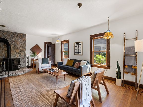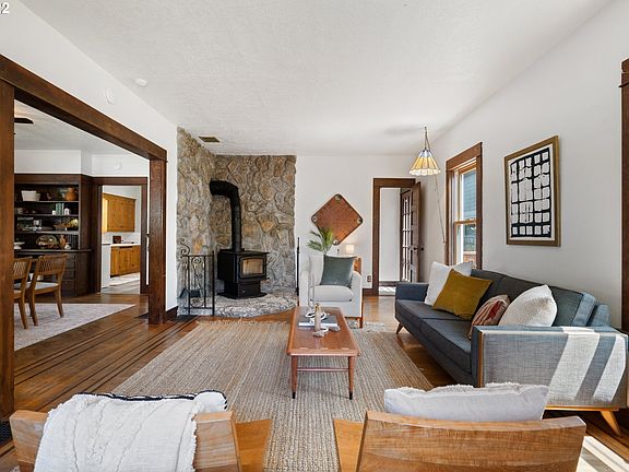 Darling bungalow on a lovely corner lot in the Montavilla neighborhood. Plenty of space to spread out on the main floor + 2 beds up and nicely finished basement. Classic liv/din rooms w/ inlaid hardwoods, built-ins & brand new certified stove. Mudroom is right off the kitchen and opens up to fenced backyard with brick patio & tuff shed. Thoughtful updates throughout including kitchen flooring, carpet, interior paint, upstairs bathroom remodel, and newer gas furnace. Ready to move right in!