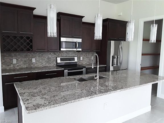 New construction on wide open canal, luxurious modern home with plenty of room for a pool in SW Cape Coral. This home is impeccably designed and built with attention to every detail. The open floor plan seamlessly blends indoor & outdoor living. Double entry doors welcome you into the light and bright interior. Expansive living room with high tray ceilings with beautiful crown molding. The kitchen boasts gorgeous 42" solid wood soft close cabinetry with granite counter tops, a broad counter height island, marble backsplash along with a stainless steel appliance package.The master suite welcomes you through the 8' doors (found throughout the home). Large shower, His & Her Sinks with make up area and walk in closets with ventilated wood shelving, Tray Ceiling, Ceiling Fans (throughout the home). The guest bedrooms are large with tall ceilings and ample closet storage. Beautiful Brick paver driveway and Front Walkway! Lanai with custom pavers, plumbing and electrical connections for outdoor kitchen. Lush landscaping with Auto Sprinkler System. This Home is close to SHOPS, RESTAURANTS, BOATING AND THE BEST SW FLORIDA CAN OFFER.