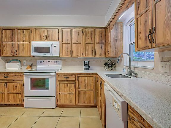 This little jewel is located on a large corner lot and only minutes to local amenities in Brooksville. This well kept home features a spacious living room with wood laminate flooring and crown molding. The kitchen and dining room open to the separate family room with a wood burning fireplace. Kitchen and master bathroom have solid surface counter tops and ample cabinet space. There is a large attached utility room and storage room as well as a screened porch. The private backyard has an above ground swimming pool with a wood deck perfect for cooling off on those hot summer days. The roof and gutters were replaced in 2015 and the AC was replaced in 2014.