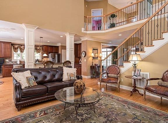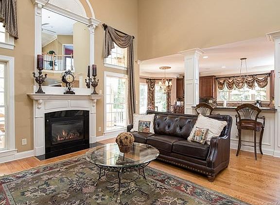 BEAUTIFUL Turnberry Former MODEL HOME! Full brick; Covered back porch w/ceiling fans; Spacious 4 Bedroom / 3.5 Bath Home; Custom draperies; FIRST FLOOR: *Two-story foyer *Gourmet Kitchen - Granite Counters - Cherry cabinets - Hardwood flooring - Wine cooler - Stainless appliances - Stainless sink - Tile back splash - Track floor lighting - New Recessed lighting - Under cabinet lighting - Roll out shelving in cabinets - Built-in wine rack - Island with new gas cook top *Dining Room - Hardwood flooring - Faux painting - Chair railing with wide molding - Trey ceiling - Recessed lighting *Library - Built-in shelving with decorative molding - Recessed lighting *Family Room - Gas fireplace with custom made mirrored mantle - Hardwood flooring - Open; high ceilings * Master on Main - Spacious with room for seating - Wall of windows - High ceilings - Neutral Carpet *Stunning Master Bath - Tiled flooring - Frameless tile shower - Double vanities *Wall-in master closet *Laundry Room - Front load washer and dryer - Cherry cabinets - Tile flooring *Half Bath *Walk-in Pantry *3-Car Garage SECOND FLOOR: *Huge Entertainment Room - 55 in. TV, Bose sound system installed - Open and spacious - Neutral carpet *Three Secondary Bedrooms - Neutral Carpet - Spacious with ample closet space - One could be an office if desired *Two Full Baths - Tiled flooring - Cherry cabinetry *Large storage room *Stairs: - Decorative wrought iron spindles - Carpeted *OUTSIDE: *Award-Winning Patio - Fire pit, In ground sprinkler system (front and back); Wooden blinds; Upgraded LED lighting throughout, Built-in Sound System; Upgraded moldings; 2020 Hotsprings Hot tub, lovely views and park-like setting backs up to woods and small pond; Crawl space; Security system; Three car garage.