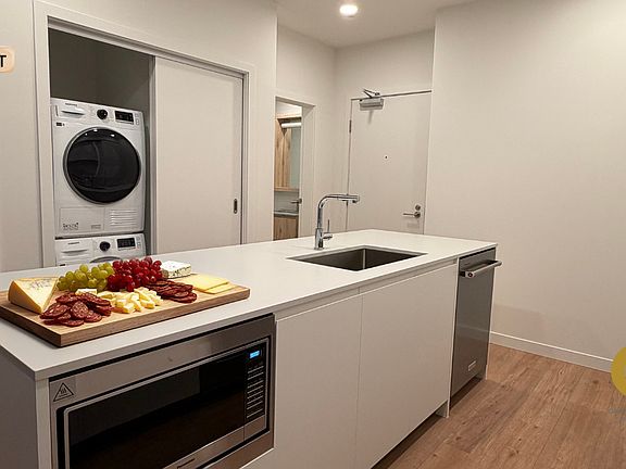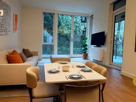 Brand-new 1-bedroom with 9' ceilings, big windows, A/C, Italian kitchen, and peaceful green outlook. Enjoy a massive covered balcony plus storage locker and EV charger. Access 20,000+ sq.ft. of amenities: gym, sauna, hot/cold plunge, co-working, rooftop deck, workshop & more. Steps to trails, climbing, Mamquam Channel, and minutes to downtown.