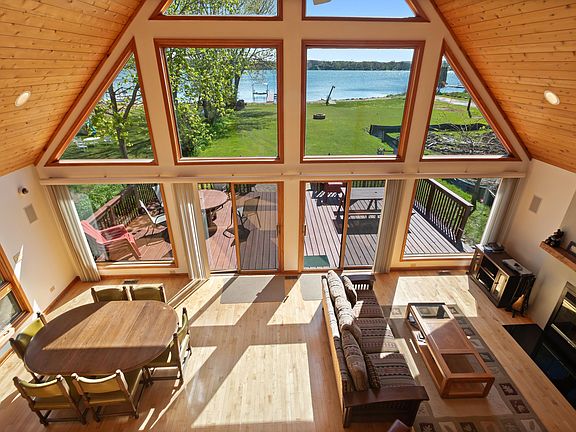 Amazing views of Lake Elizabeth could be yours from this lakefront home that sits on 50' of level sandy frontage. Four bedrooms and two full baths plus a loft space offer plenty of space to entertain your friends and family. The two-story great room is a great place to gather. The fireplace in the great room offers a cozy space during the winter. There are 3 bedrooms and one bath on the main level. The master and loft area are located upstairs providing a private retreat. Relax on the large lakeside deck off the great room. A large level yard offers plenty of outdoor space to enjoy the lakefront. Two car attached garage. Pier is included in sale. Lake Elizabeth is an all sport, spring fed lake minutes from Wilmot Mt (Vail Resorts) and Lake Geneva.