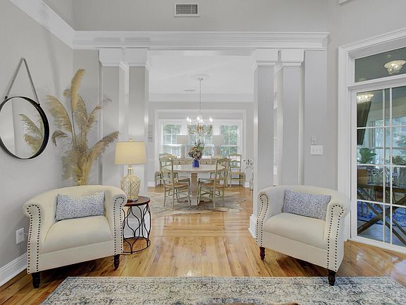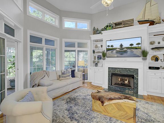 Marais at Seaside Farms is a luxury resort-style townhome community featuring a private swim center, walking paths, trails, gorgeous landscaping, fountains & ponds. This coveted, rarely obtainable one-story floor plan with chair lift & elevator shaft is situated on a quiet cul-de-sac. Walk, bicycle or take a golf cart to the popular Shoppes at Seaside, offering a Target, Harris Teeter grocery, dining, fitness, arts, florist, salons & so much more! This superb location is only a 5 minute drive to beaches & Mt. Pleasant Towne Centre. Enter the home to be greeted by a grand foyer, vaulted ceilings, focal fireplace & natural light flowing in from the walls of windows. Relax on the spacious enclosed sun porch with serene Lowcountry views. Enjoy the stately dining room, flowing nicely into the