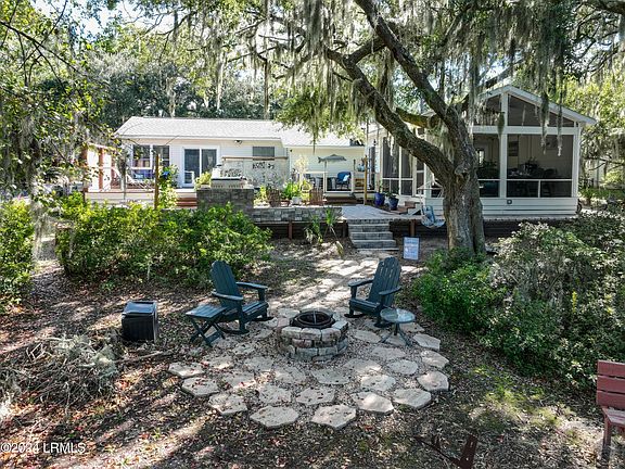 If you feel called to the tidal marshes of the Lowcountry and long to enjoy gentle breezes and your very own spectacular sunsets with breathtaking water views, this could be the ONE! The fenced back yard is an oasis you will want to share with friends and family featuring a newly added spacious screened porch with vaulted ceilings, fans and an option to purchase the inviting porch swing bed. There is so much more to love including the new paver patio, built-in Blaze stainless steel grill, smokeless fire pit, the large deck with a new hot tub, Edison lighting and professional landscaping. The interior of this single story home was recently renovated with a new Carolina Room, two owner's suites, a newer roof, newer AC systems, new appliances and luxury vinyl plank flooring throughout. The interior of this single story home was completely renovated a few years ago with two incredible additions. One of these additions is the beautiful Carolina Room with a wall of windows allowing nature's visual beauty to pour inside and conveniently opening up to the new screened porch to the back and out to a private deck from the side. The other thoughtful addition is the new owner's suite with a large walk-in closet, ensuite bath, separate laundry room and sliders opening up to the new deck where you can indulge in your own private hot tub. In addition to the new owner's ensuite, there is a 2nd master bedroom with it's own ensuite bath, perfect for a mother-in-law suite or guest retreat. The 3rd and 4th bedrooms share a full hall bath. The inviting great room encompasses the eat-in dining area, living room and kitchen with all new stainless appliances and more room to enjoy entertaining family and friends indoors. The tidal marshes behind this home offer year round entertainment with the ebb and flow of the tides and a vibrant change of seasons that only the Lowcountry can offer. Bird watchers will delight watching dozens of species frolic right in front of your eyes. Other nice exterior features include two storage sheds, a fully fenced back yard and a circular driveway. This coveted Pigeon Point location is within walking distance to Historic Downtown Beaufort. You will be centrally located close to shops, dining, grocery stores, coffee shops and so much more. You can also easily walk or ride your bicycle to the Pigeon Point Park or boat landing. A simpler lifestyle awaits you as there are no restrictive covenants here and flood insurance is optional. You can be gathered with loved ones in your new coastal dream home in time for the holidays and start living your best Lowcountry life.
