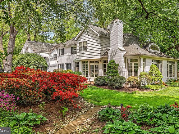 Introduced by an inviting circular driveway, this custom Colonial-style residence, set on meticulously landscaped grounds, impresses at first sight with its grand architecture. A spacious foyer entry welcomes guests to the remarkable main level floor plan with hardwood flooring, extensive moldings and recessed lighting. A formal living room with a masonry fireplace leads to expansive addition with volume ceilings, wet bar, fireplace, oversized doors and windows that saturate the interior with light, and frame exceptional views of the side and rear settings, while offering unlimited design and furnishing opportunities. The gourmet kitchen complete with wood cabinetry, cooktop, wall ovens, large island and pantry. Main level features include a den/office with built-in's and rear staircase. Upstairs, the Primary suite includes a spa like bath with separate shower, soaking tub and volume ceilings, walk in closets, and 2nd full bath, 4 additional bedrooms, two full baths and exercise room. Additional features include a side-entry two-car garage, unfinished basement with walk-out entrance, multi zoned heating/cooling systems, potting shed and pool storage shed. Enjoy outdoor entertaining on the screened-in porch or multiple terraces, in-ground pool, overlooking the superb 1.45 acre grounds that have been artfully landscaped with lawns, flowering shrubs and trees.