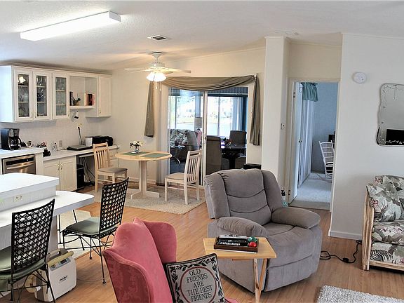 2 BR 2 BA double garage, On the Water!!!! Open floor plan, large kitchen made for entertaining, Updated appliances, master bedroom has double glass doors to enter the Florida room, Large 18 x 24 Florida Room with tinted windows and separate AC, Private patio area, new washer and dryer, new dishwasher, high ceilings, this home offers crown molding, upper storage in garage, new gutters with extra large downspouts, Freshly painted driveway, new hurricane garage door, New roof in 2018, New AC in 2011.