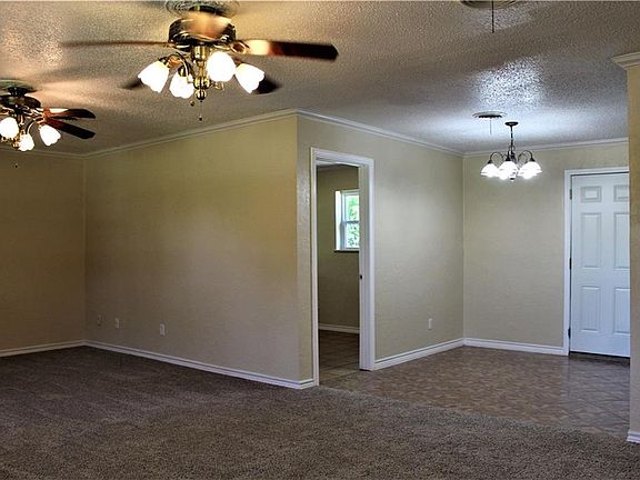This remodeled home has new carpet and new paint throughout the house. All windows and doors have been replaced. The large living room is plenty big enough for furnishings and is open to the dining room. Utility room has sufficient space to fit a washer/dryer and freezer. The kitchen has new appliances, new cabinets, new counter and a new sink. Gaze out the kitchen window to a country view. All 3 bedrooms have ceiling fans and the closets have bi-fold doors that coordinate well with the other doors. The hall bathroom has a new vanity. The half bath has been re-tiled and has adequate storage. The hallway has a top and bottom linen cabinet and if you need more storage, there is an outbuilding close to the house. Keep cold during the summer and warm during the winter with central H/A. Do you love trees? This house is surrounded with mature shade trees to help block the sun. Park your vehicles in the 2 car carport. Home is ready for a new homeowner so call today to schedule your showing.
