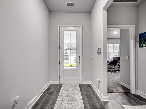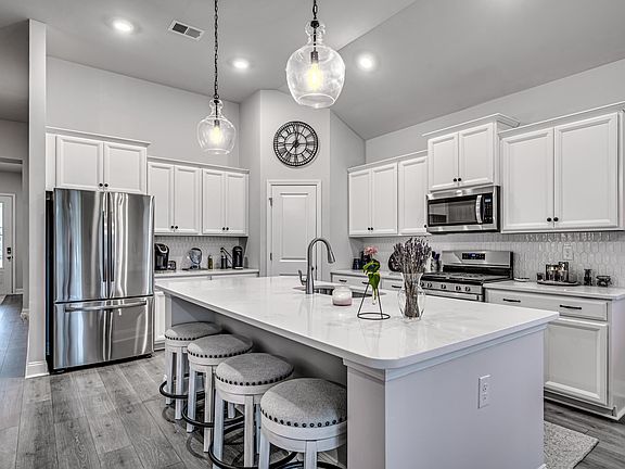 Welcome to The Lakes. This neighborhood is quiet and comfortable yet so close to everything. This home offers spacious rooms with high ceilings, open concept living and a split bedroom floor plan. Kitchen is open and eye catching. It boasts a large quartz island with plenty of seating space, walk in pantry, coffee bar, upgraded (Pottery Barn) pendants and stainless steel appliances. The master offers a quiet sanctuary in the back of the house with dual walk in closets and a master bath with tiled shower, double vanity, and linen closet for even more storage. 3 other bedrooms are located at the front of the home sharing a full bath with a convenient separate linen closet. Fourth bedroom would be a great home office if preferred. Enter the home via the front door and you have a foyer opening into the large living spaces. Enter through the garage, which has pull down attic stairs to access attic storage, and you walk into a nicely crafted drop zone located next to a separate laundry room. Floors in kitchen, living space and dining are Mohawk RevWood select laminate wood. This home has lots of natural light making it feel comfortable & cozy for daily living yet also provides the perfect setup for entertaining family and friends. Feels brand new without the hassles of construction.