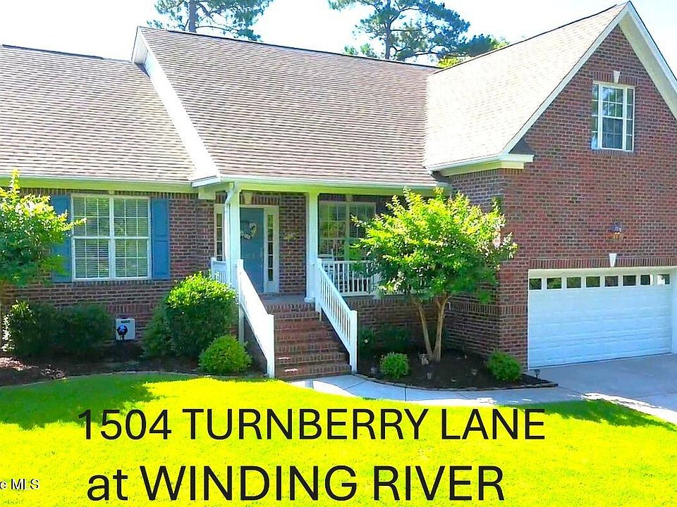 Welcome to 1504 Turnberry Lane.—an Everett Builders custom move-in ready brick home offering 2,281 sq ft of thoughtfully designed living space. With 4 bedrooms, 3 full baths, with a Flex/Finished room over the garage, this home blends timeless elegance with modern flexibility. New roof installed August 2025. Get that good old summertime country feeling from your backyard screened in porch. Sippin' a sweet tea within the shade of your screened-in porch. Flip-flops off and sunglasses on it's another sunny day in ''WINDINGRIVERVILLE''. Hummin' a tune and watchin' the sun sparkle a glistening dance across your backyard pond. You have Gone to Carolina - Gone to Carolina. Inside, the primary suite is a private retreat featuring a spa-like whirlpool tub, double vanity, and framed glass shower. The kitchen boasts granite countertops, GE stainless steel appliances, solid wood cabinetry, and pantry. Oak hardwood floors add warmth and character throughout the main living areas. The first floor includes two additional flexible rooms—ideal for a home office or guest spaces. Upstairs finished rooms offer the flexibility of being a fourth bedroom with full bathroom ensuite or craft studio and cozy media lounge. The two-car garage features an epoxy floor. Stop dreaming. Make 1504 Turnberry your new home and embrace the Carolina Coastal Lifestyle Winding River amenities have to offer. LOCATION - LOCATION - LOCATION: Award Winning Winding River is 40 minutes South of Wilmington, one-hour north of Myrtle Beach Airports, and minutes from the Historic Seaport town of Southport. If you like the Coastal Lifestyle, you will love that Winding River has its own Ocean Front Beach Club w/ Pool, on quiet Holden Beach. Boaters have 2 Marinas, one on the Intracoastal Waterway and the second at our ''River House'' Clubhouse on the Lockwood Folly River. Want more - see more - schedule your property tour. LOCATION - LOCATION - LOCATION: Award Winning Winding River is 40 minutes South of Wilmington, one-hour north of Myrtle Beach Airports, and minutes from the Historic Seaport town of Southport. If you like the Coastal Lifestyle, you will love that Winding River has its own Ocean Front Beach Club w/ Pool, on quiet Holden Beach. Boaters have 2 Marinas, one on the Intracoastal Waterway and the second at our "River House" Clubhouse on the Lockwood Folly River. You can go to your Beach Club by Boat! Come and see why the amenities at Winding River are "The best kept secret". Enjoy gatherings at the Property Owners Club House and Event Center, or at the Poolside Pavilion B.Y.O.B. Bar, Picnic and Grilling Areas. There are a variety of activities and plenty of fun-loving people to share good times with. Sometimes it is "all about fun and games" including the Carolina National, Fred Couples 27-hole Audubon Golf course, Fitness Center, Walking Trails, Tennis, Pickle, or Bocci Ball? Come Plant Some Roots in our Community Garden and Start Owning Your Dreams Now!