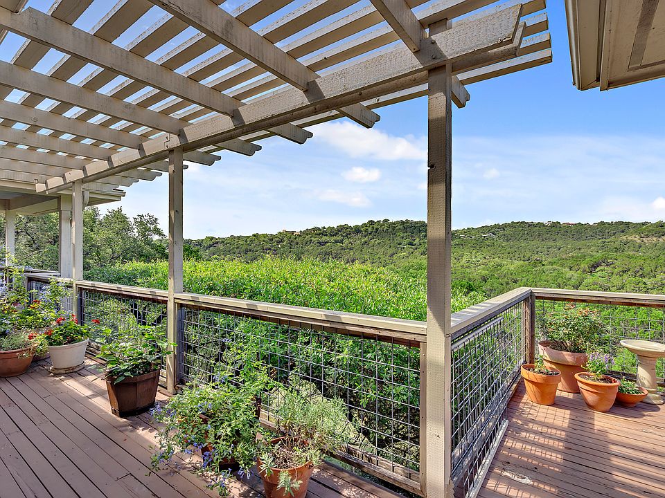 Serene, private & inviting with panoramic views of the hill country. Enjoy life with a cup of coffee on the inviting wrap around deck overlooking Wild Basin or relax with a glass of wine in the hot tub on the screened porch. Bird watchers will enjoy the many birds that come and go. Large rooms with views both upstairs and down. Engineered wood flooring on the main floor, updated kitchen with stainless appliances. Master, with sitting room, is on the main floor overlooking the canyon. Two living areas upstairs. Large artist's studio off the garage. Downstairs are 3 bedrooms with 2 baths and a game room. New carpet and paint in downstairs rooms. Native plants and trees on a 1.5-acre lot which goes to Wild Basin Ledge. Flat area for yard or pool. Minutes from downtown Austin, shopping and restaurants.