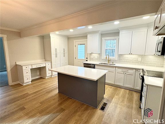 Welcome to 1504 Union Church Road! A completely renovated home in the heart of Oconee County which offers the perfect blend of farmhouse charm with modern luxuries throughout. Sitting on 1.2 acres, this home boasts versatile rooms for any lifestyle, as well as peaceful outdoor spaces to relax and unwind. The list of new features on this house is long! Some of the improvements include a new roof with GAF architectural shingles, new gutters, new HVAC system, new LVP and carpet, new windows, new doors, all new electrical fixtures, a redone well, new kitchen appliances, new water heater, new hardiplank siding... the list goes on! The spacious kitchen has been completely rebuilt featuring custom cabinetry, quartz countertops, a large island, GE appliances, and ample storage. The main living space is open concept and appointed with new LVP flooring and custom trim. The owner's suite is located on the first floor with a walk-in closet and en suite bathroom. There are two additional bedrooms and full bath on the main floor as well creating so many options for the use of these spaces. Upstairs there are three additional bedrooms, a full bathroom, and the most charming bonus room complete with an original shiplapped wall! The new concrete parking pad provides ample parking or the ideal setup for a pickleball court! There is also a detached garage building with an enclosed storage area with electric. As a final touch, the owner is allowing the buyer of this home to pick out their own color for the front door! Enjoy peaceful living with plenty of space to relax and entertain, located close to local amenities. The work at 1504 Union Church Road has been done and it screams "Welcome Home!" This home has been beautiful remodeled and has so much to offer!