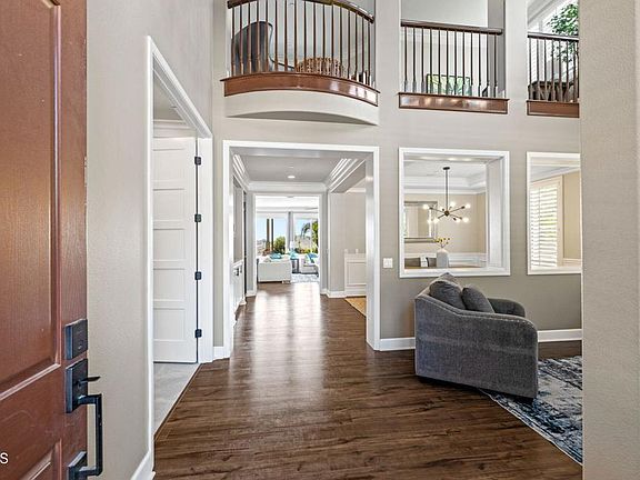A rare opportunity awaits you in the coveted Ridge Ranch Estates. Presenting 1504 Valley Drive, a truly remarkable property situated on a sprawling .62 acre lot offering unparalleled privacy and sweeping views. As you enter the home, you are greeted by a dramatic foyer with a double height ceiling that flows into the adjacent formal living room donning a stunning oversized chandelier. The formal dining room is graced with custom wainscoting adding a timeless quality, while nearby is a unique wine storage room set behind Italianesque wrought iron gates. The second level features a sizable loft which provides additional space and a laundry room is conveniently located on this level which easily serves the five en-suite bedrooms. The Primary Suite is an exceptional retreat, boasting an expansive array of closets, a cozy fireplace and a private balcony with tremendous sunset views. Remodeled in 2022, the primary bathroom delivers a spa-like experience including a luxurious soaking jacuzzi tub, a modern curbless shower and a rain showerhead. In addition to the five bedrooms is a generously sized home office providing an ideal room for remote work or maybe a ground floor (6th) bedroom to host overnight guests. The outstanding pride of ownership is showcased in the great room beginning with a large family room with custom cabinetry housing the media center and ample shelving for displaying the most special memorabilia. This large space opens to a glamorous chef's kitchen remodeled in 2022 featuring custom cabinetry with pull out shelves, quartz countertops, stainless steel appliances, a large pantry and island perfect for gatherings. Through the sliding glass doors, one can enjoy the masterpiece of this home - a sprawling backyard fit for grand scale entertaining and recreation. Stunning hillside views serve as a breathtaking backdrop to the sparkling zero edge infinity pool and bubbling resort-style jacuzzi. Enjoy the fun tiki vibes in the outdoor kitchen or relax around the built-in fire pit area. The expansive green lawn dotted with thriving fruit trees was professionally designed to beautifully connect the lower terrace which can serve a variety of recreational uses or it can be easily converted to equestrian facilities. This home also offers a 3-car garage with a 240V charger-ready hook up. This equestrian-friendly community is located near the Hidden Valley Golf Club, Castle Park and easily accessible to the 91 and 15 freeways.
