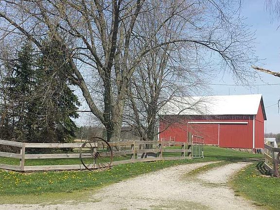 Looking for big and in the country? Here's a nice, brick two story sitting on 9.5 acres. 27x18 LR with fireplace and spacious FR with built-ins. Separate utility area with sink. Many improvements over the last several years including: new flooring in kitchen, utility room, bathrooms, and LR. Furnace new in 2011. Bank barn roof and siding replaced 8 years ago. Well is 6 years old and 168' deep. Large wrap around deck and covered porch to enjoy the warm, summer evenings. 3 car garage, bank barn and pole barn for extra storage and whatever hobbies/needs you may have!