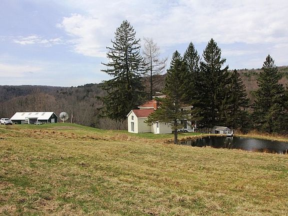 Rare opportunity to purchase a large tract of land bordering state forest. This property has it all, panoramic views, privacy, brook, pond, great 48X32 shop/garage with concrete floor power and water, spacious 1890 two story farmhouse. Prime vacation or year round homesite. Lots of frontage on both sides of road, about 20 acres open hay fields, balance wooded. Bring family, friends, 4 wheelers, horses, livestock. Abundant wildlife in area. Close to Cobleskill and I 88. Small hunting cabin across road, near creek. Outbuildings.