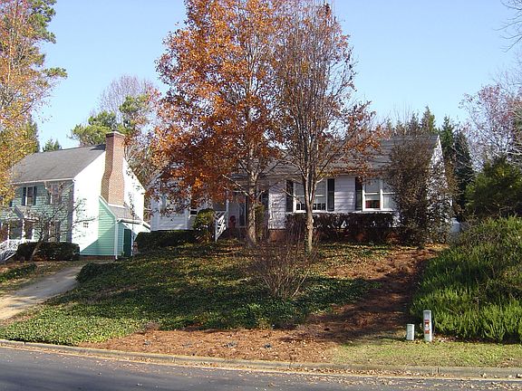 Ranch house w/ 3 bedrooms, 2 bathrooms, large laundry closet in hallway near bedrooms, entry foyer w/ skylight and 2 stained glass windows (12.7X6.9), dining room w/ bay window (14.5X10.8), eat-in kitchen w/ bay window, beautiful sunken great room w/ beamed high ceilings (18X14.9), built-in book cases, wood work, brick gas fireplace and double glass doors to large wood deck (18X15.5) leading to brick patio w/ landscaping, front porch. Neighborhood Description Great neighborhood located on a lake and has sidewalks. Houses built in the early 1980's, thus the neighborhood has lot's of big tree's! There are 4 different grocery stores within a few miles of this house. The house is also within walking distance of Sawmill Tavern. Easy access to 540.