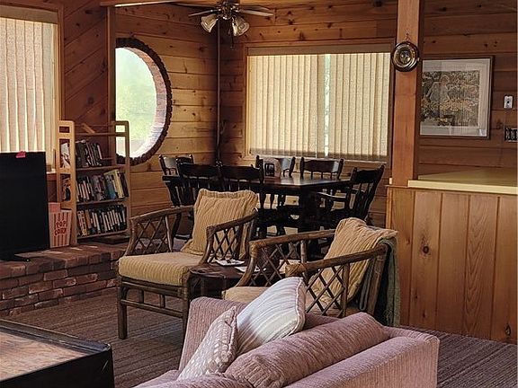 Mountain home that sits high on the hill. Lovingly built for the family by the current owners. Home boasts large, open living space with living room, dining room and kitchen all on the entry level. Living room has high,vaulted Pine ceilings, fireplace with brick surround and lots of windows. Dining room has a bubble window and ceiling fan. Kithen has a window, back door and a large counter for cooking and entertaining. This floor also has 2 bedrooms and a full bath. Upstairs is a large open loft with closet and 3/4 bath. Under the home is a large area for storage, maybe a work shop. Home needs some updating, but has a newer roof, so bring your ideas and make this mountain home your own.