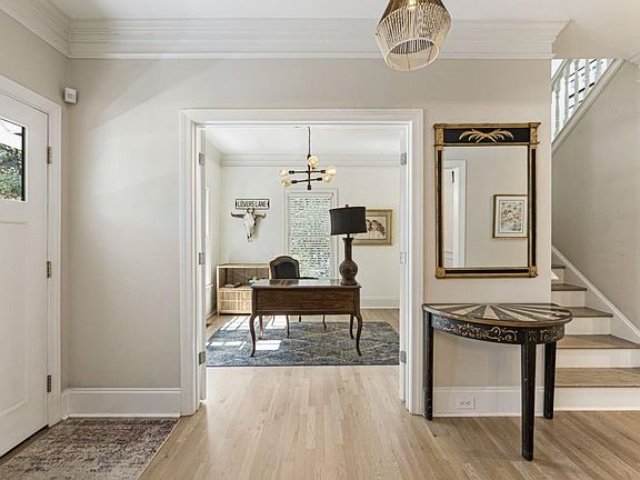 Nestled on a scenic privately gated lot in Alpharetta, this beautifully crafted custom home seamlessly combines timeless architecture with modern convenience. Designed in the classic Craftsman style, it offers an elegant yet relaxed atmosphere, providing both space and privacy. The charming wide front porch greets you, creating a peaceful spot to unwind while admiring the beautifully landscaped front yard. As you enter, the foyer unveils a formal dining room to one side and a dedicated home office on the other. The main level features a bright, open layout with defined living and dining areas, accented by freshly updated hardwood floors, custom trim, and a stone fireplace that anchors the family room. Flanked by built-in bookcases, the fireplace creates a cozy focal point. From the family room, the screened-in porch seamlessly extends your living space outdoors, overlooking a sprawling fenced backyard-perfect for a garden, play area, or simply enjoying the outdoors. The kitchen is designed for style and efficiency, featuring granite countertops, a center island with seating, a high-end Thermador oven, stainless steel appliances, tile backsplash, and abundant cabinetry that provides excellent storage. Its open sight lines in the main living areas make it ideal for everyday living and entertaining. Upstairs, the spacious primary suite serves as a tranquil escape, featuring a large bedroom, two oversized closets, and a luxurious spa-style bathroom with a soaking tub, dual vanities, and a stand-alone tile shower. Just at the top of the stairs, a built-in office nook offers a quiet spot for work or study. Four additional bedrooms are thoughtfully laid out, providing versatility for guests, home offices, or extra living space. The fully finished terrace level adds valuable living space full bathroom, multiple storage closets, and access to the back patio. This flexible area is ideal for a media room, home office, gym, or guest suite. This exceptional property also includes a spacious two-car garage with plenty of vehicle room and additional storage. Located just minutes from Milton's renowned equestrian farms, this home offers convenient access to a vibrant mix of local dining, boutique shopping, and scenic beauty. Here, you'll enjoy the perfect blend of space, comfort, and privacy in one of North Georgia's most sought-after communities.