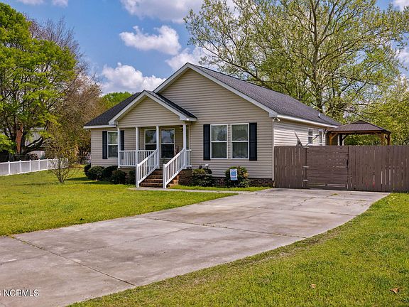 Charming, very well maintained 3/2 in Fairly Haven, close to shopping, restaurants and Scotland Memorial Hospital. LVP throughout the center of the home. Kitchen has been beautifully updated with painted cabinets. New paint in the living area. Primary bedroom is spacious with an ensuite bathroom, dual sinks and a garden tub. Part of the yard has been fully fenced and includes a wide wooden deck and a pergola that will convey. Small covered storage area for grill, etc. Hot water heater is new. Come see this move-in ready home!