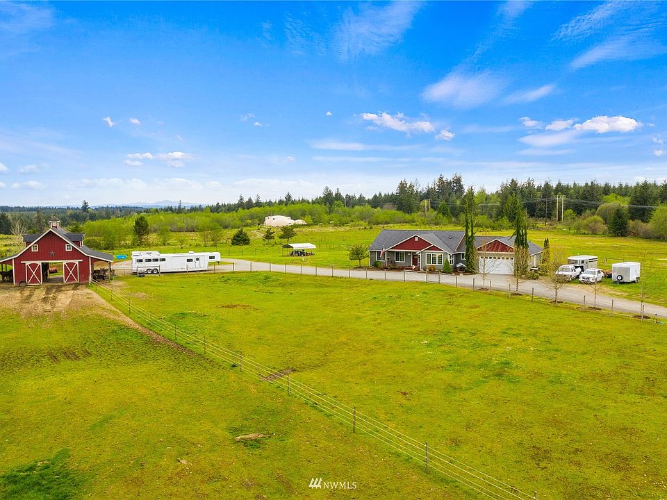 Load up your horses, this property is perfect for you, and move-in ready! This is a hard-to-find property located in the highly desirable Grand Mound area of Rochester just off I-5 with direct access to thousands of acres and miles of riding trails! The property features a 4-stall barn with power, high wall round pen, individual horse runs with pastures good for year-round turned out, trailer parking and turn around driveway, hay loft (stores 7 tons), spacious tack storage, horse-friendly fencing, and divided paddocks. Also, an abundance of hunting out of your backdoor with pheasant, duck, geese, deer and elk right in your backyard! The home has new LVP flooring, great natural lighting, a covered patio with built-in lighting in the deck!