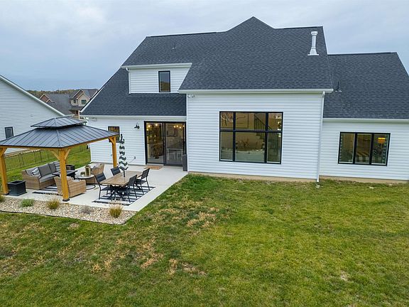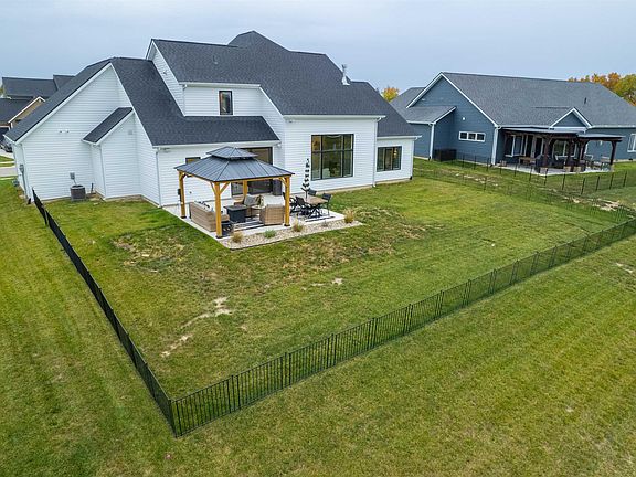 *OPEN HOUSE THIS SUNDAY 11/13 FROM 2-4PM* It doesn't get much more picture perfect than the home that follows this description. A gorgeous build by Granite-Ridge Builders finished in 2021. This beauty boasts over 2,500 square feet of living space accompanied by a 700+ sq. ft. three car garage! Your eyes will light up as you drive up to this modern farmhouse style home where every detail matters, including the curb cut driveway for a smooth entrance into your driveway. Walk in the front double doors into your foyer with towering 18 foot ceilings. Walking from the foyer into your open concept living space, you will notice the massive stone gas fireplace as the centerpiece to your family room. The dining nook flows seamlessly from the family room to connect you to your kitchen. This state of the art kitchen comes equipped with all matching stainless steel Samsung appliances. Don't worry about counter or cabinet space anymore as you not only have a huge island in the center of your kitchen, but you also have a generous amount of custom soft close white shaker cabinets throughout. You will also appreciate the convenience of having a walk in pantry to the back of the kitchen that houses a built-in wine fridge as well! Just off the kitchen you will find your large laundry room with built in storage, a half bath for guests, and garage entry. The Owner's Suite leaves no stone unturned as it has plenty of space for a king bed, and all your bedroom furniture. Walk through your primary bedroom to your breath taking en suite bathroom and walk-in closet. This bathroom will blow you away with the black tile floors, double vanity, and a huge tile walk in shower with double shower heads! Wander upstairs where you'll find two more nice sized bedrooms with a full bathroom between them. If you're somehow not sold yet, take a peek outside the giant 8' by 8' patio doors off your dining nook to enjoy the 20x20 concrete patio and a metal roof gazebo that makes for a perfect space to entertain your friends and family.
