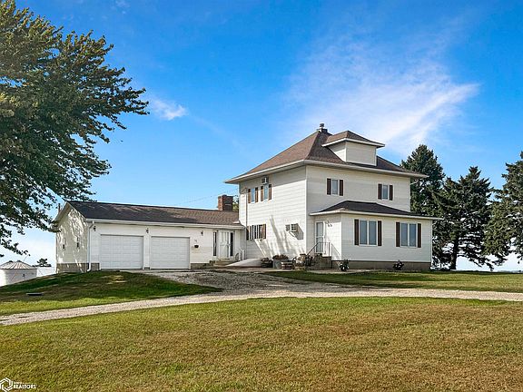 Impressive views in all directions from this picturesque farm style home. Walk into a large mudroom with laundry and 3/4 bath. The living spaces include large eat-in kitchen, separate dining room, large living room, bonus room, and spacious family room with fireplace. Full bath is on the main floor. Upstairs you will find four bedrooms. This property offers a 55 x 90 machine shed, newly built 2 stall (24x24) detached garage, and a couple more outbuildings and bins. Come see your new retreat and make it yours!