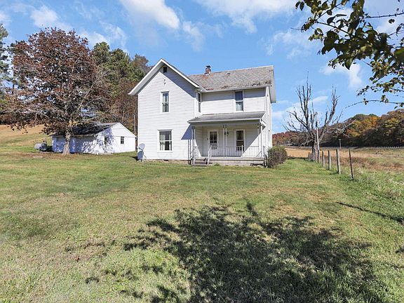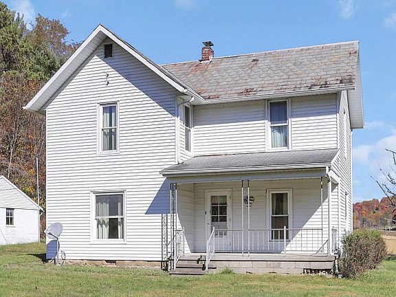 Own a piece of history! Original farmhouse with 2.12 acres. This is part of an original farm that started out in 1835. Home is all original. Spacious, extra large bedrooms, eat in kitchen, separate DR, Formal LR, and Family Room. Make this what you want. All original 10 inch wood trim, hardwood flooring under carpet, huge windows for natural light, and 2 porches. 2 detached buildings- 1 concrete block (2 car) with concrete, separate pole barn with room for 4 cars or your farm animals. Enjoy a little bit of woods and rolling acreage. This home will need to be cash or conventional.