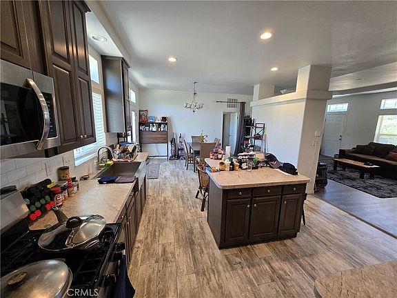 The existing 4 bed/3.5 bath Golden West manufactured home on permanent foundation is a roomy 1980 sq ft and was built in 2020. The home has upgrades such as 6" exterior walls, 9 foot ceilings with tall cabinets, and vinyl plank flooring in living room. The modern kitchen, with newer refrigerator and dishwasher, opens up to living room area with deck that overlooks the garden and creek area. The master bedroom with private bath and walk-in closet and the office across from a half bath are easily accessed from the living room. The house has a separate family room with kitchenette and two bedrooms with two full baths accessed from the opposite side of living room. This area has been successfully rented out as an air bnb, possibility for additional income.