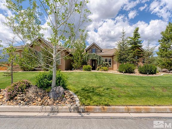 Experience the epitome of luxury living in this stunning 3,884 sqft single-level home on Napoleon Drive. Nestled in the prestigious upper Estates of Mount Rose, revel in the majestic Sierra Nevada Mountain views. This 1.28-acre premium lot offers tranquility and privacy, backing up to natural space. With 4 beds, 3.5 baths, and 14-ft ceilings, the open floor plan bathes the interior in natural light. Entertain effortlessly in the gourmet kitchen with new stainless appliances and granite finishes., The primary suite features a gas fireplace, patio access, and a spa-like bath. The large kitchen offers plenty of counter space, large pantry and dual dishwashers. Enjoy the landscaped backyard with stone patio and fire pit. A four-car garage, bonus room, and ample storage add to the allure. Centrally located for Lake Tahoe, Carson City, and Reno, and within the highest-rated school district. Your dream home awaits!
