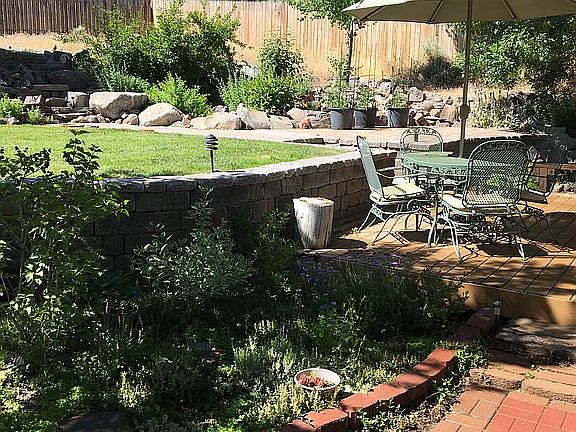 997 sq ft single-family home with 3 bedrooms and 2 full bathrooms. Fully fenced, front and back. Large back yard deck and several spacious patios. Extra large storage shed. RV parking. Triple pane windows. Wood burning fireplace. Landscaped front and back yards, retaining walls and low maintenance irrigation/sprinkler systems. Malibu lighting in the backyard. New water heater, new central AC and new forced air furnace. Garage epoxy sealed with 220. No HOA.