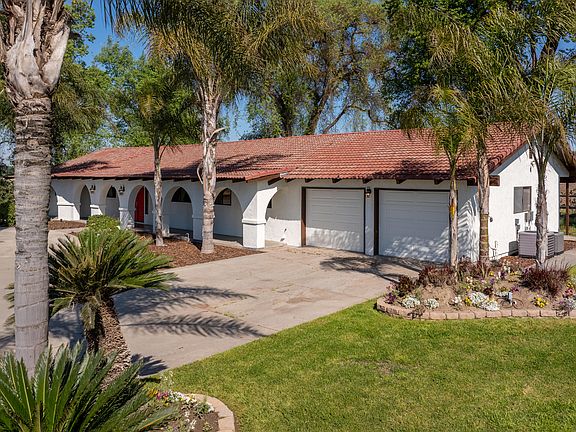 Someone gets a second chance for Country livin' on the outskirts of town! Welcome home to your very own homestead situated on over 2.3 acres in southeast Tulare. As you pull up to the property you'll love the picturesque landscape and mature treescape from almost every angle. The circle drive way and Spanish-style farm house just feels right for the oasis that it is. To the east of the property is additional cement and a large shop that can fill all sorts of needs for the new buyer. The exterior has lots of covered patio space from the front to the back of the property. My favorite and the most unique aspect of this property has got to be the deck and bridge built overlooking and crossing over the canal. There's not many locations that contain views and exterior hangout spaces like this locally. The bridge takes you to the back half of your property that has recently been cleared and is ready for whatever creativity the new owner would like to pour into it. The inside has been updated with fresh paint, wood-look flooring, granite countertops, new carpet, and appliances. The sightlines from the front door extend perfectly to your deck and back half of the property. The French sliding glass doors + open-concept floorplan makes for tons of living and entertaining space inside and outside of your home. The split floorplan features the primary bedroom & bathroom, an office with built-ins + an oversized laundry/pantry on one side, while the other side features 2 additional bedrooms and a bathroom. The spaciously attached 2-car garage has finished walls, epoxy flooring, and a sweet extra bathroom + Sauna. Don't miss out on getting your one-of-a-kind forever home!