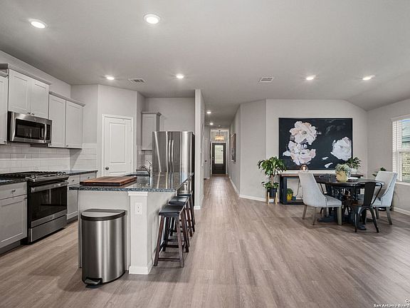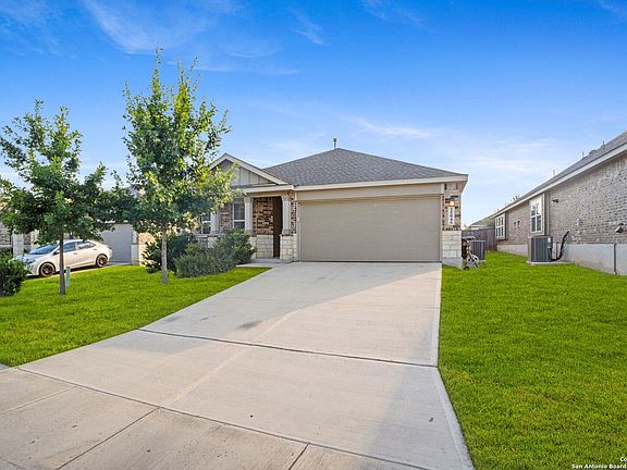 OPEN HOUSE THIS SUNDAY, Nov 9th from 2-4PM. In the gated community of Potranco Run, this beautifully maintained single-story home offers 3 bedrooms, 2 bathrooms, and nearly 2,000 sq. ft. of thoughtfully designed living space. The open floor plan seamlessly connects the kitchen, dining, and living areas, creating an inviting layout ideal for entertaining or everyday comfort. Natural light fills each room, highlighting the warm and welcoming atmosphere throughout. The spacious kitchen offers plenty of cabinetry and prep space, while the bedrooms provide comfort and privacy for all. Outside your door, enjoy resort-style amenities including a sparkling pool, park, volleyball court, and clubhouse, ensuring there's always something to enjoy close to home. Built just five years ago and move-in ready, this property combines modern convenience with community living, making it a perfect place to come home to.