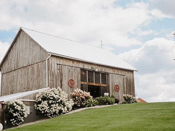 The Ridge View Barns, where dreams become reality amidst the breathtaking backdrop of rolling hills and rustic barns. (also available with an additional 35 acres of tillable - $1,269,900... 45+ total acres) This thriving wedding venue has already secured a fully booked 2024, a testament to its allure and popularity. Step into the oversized ceremony and reception barns, where rustic charm meets modern elegance, creating an enchanting atmosphere for celebrations of love. With two on-site bathrooms, 2 getting ready rooms, two bars, and parking for up to 300 guests, every detail is meticulously crafted to ensure unforgettable experiences. Spanning across 10 acres, the property offers ample space for potential expansion, providing endless opportunities for growth. The meticulously restored 3500+ square foot farmhouse serves as a centerpiece of comfort and style, blending historic character with contemporary amenities. Outside, professionally manicured landscaping and lawns set the stage for picture-perfect moments against nature's canvas. Don't miss your chance to own this thriving business and write your own success story in the wedding industry. Seize this rare opportunity today and make your mark in the world of weddings.