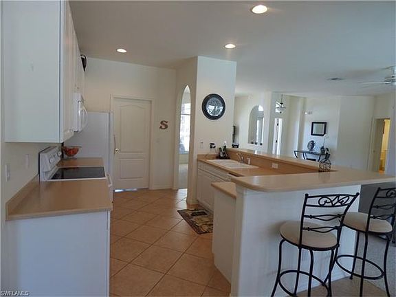 Sparkling Home, Sparkling Pool describes this Three Bedroom Two Bath home located in Gated Community of Colonial Pointe. Inviting landscaped entrance opens to split floor plan with pool view from formal dining, living room, kitchen, breakfast area and Master Bedroom. Light and Bright kitchen with beautiful white cabinets and corian counters. Family sized lanai to entertain around the heated pool with mature plantings for privacy. Separate laundry room off two car attached garage. Conveniently located near beaches, restaurants, shopping and airport. Furniture available seperately