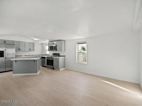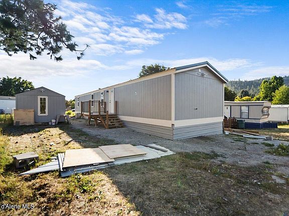 Completely rebuilt 16 x 60 manufactured home located on a leased lot in Rathdrum. New interior drywall, floors, cabinets, counter tops, bathrooms, decks, insulated skirting, and a 10 x 20 storage shed/work shop with power. Lot rent is $550 per month and includes water/sewer. Looks and feels brand new!