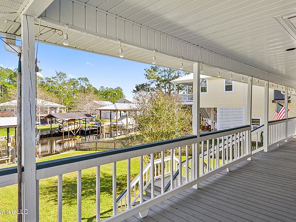 Waterfront-Look no further! You will love the setting and amenities this home has to offer. Situated on a deep-water canal with easy access to the Jourdan River, covered boat house, cul de sac street, beautiful fenced yard and an inviting covered porch to take it all in. Downstairs you will find plenty of storage, workroom with workbenches and full bath, garden shed and lots of space for entertaining! Upstairs you will enter into a wonderful open floor plan with a very spacious great room, large updated kitchen with granite counters, island and breakfast bar, SS appliances and 2 pantries. Elevator opens into kitchen/dining area. What a plus! The bedrooms are very spacious and offer large walk-in closets and built ins. Hall bath has granite double vanities, 5ft jacuzzi tub, more storage and laundry equipped with full sized washer and dryer. There is updated flooring throughout and all appliances are included. The subdivision offers clubhouse, community pool and tennis courts and is located just minutes to I-10. Be in Old Town Bay St Louis and beaches in just 15 minutes. Don't miss out on your waterfront getaway.