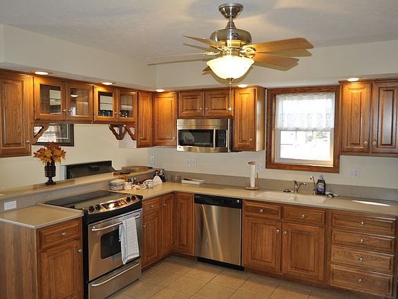 This exceptionally clean and well maintained home is move in ready and immediately available. The quality of construction and attention to detail makes this a must see. Features: Six Panel Solid Oak Doors Thoughout, Ceiling fans in Living Room, Kitchen and both bedrooms, Amish Oak Kitchen Cabinetry, Easy Clean Double Hung Double Pane Windows, Main Floor Laundry, Jetted Soaking Tub Master Bath, Filtered Drinking Water System - Kitchen, Custom Milled Oak Woordwork throughout, Solid Surface Countertops. Full finished basement with fireplace in family room. Also Included: All Window Treatments, Custom Solid Wood Venician Style Blinds, Stove, Refrigerator, Microwave, Dish Washer (all are stainless steel) Washing Machine and Dryer