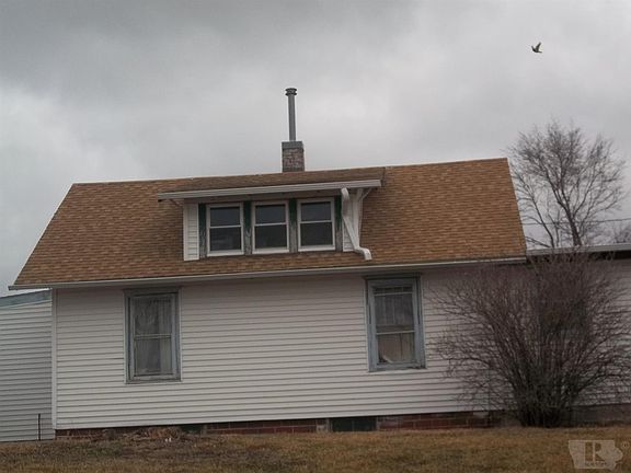 acreage located on hard surface road. House has vinyl siding and a newer roof. There are several new windows. Dining and living room have laminate flooring. Upstairs floors are original hardwood and could be refinished. Galley style kitchen and main floor bedroom in newer 1 story addition. Outbuildings include hog hut, chicken house, small older shed. 2 car detached garage has dirt floor. Assessor says 3 acres but survey measurements show 4 acres. Needs new septic system paid by buyer