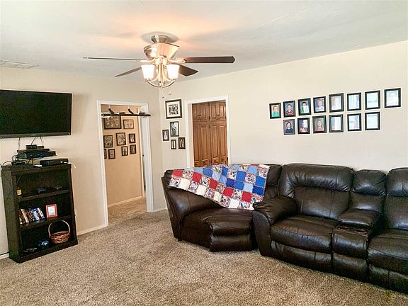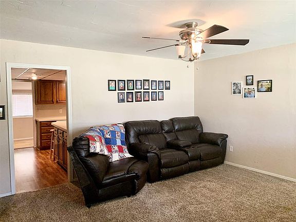 This cute 1920's home features 3 bedrooms, 2 bathrooms and is situated on a large corner lot with a storage building, which includes an overhead door and electricity. The interior features 1,888 sq ft +/- of living space, a formal dining room, spacious laundry/mudroom, home office and lots of storage space throughout. Improvements include new paint, carpet and updated bathrooms. The exterior includes a spacious backyard with storm shelter, wood privacy fence, and a 2 car carport.