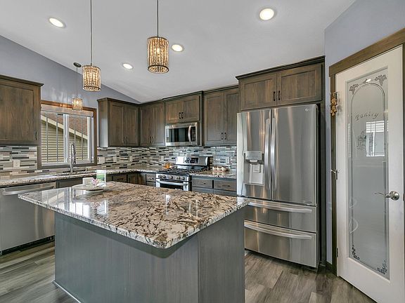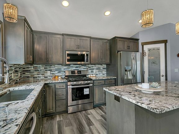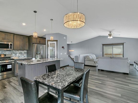 You will love the contemporary colors and finishes in this 5 year old split level in a convenient southern Sartell location! The home was custom built, and features many upgrades not found in a typical spec home. The main level living area is an open great room with a high ceiling, and the home has large windows, white five panel doors and hard floors throughout. The beautiful kitchen cabinets have soft close doors and drawers, and there is a center island, walk in pantry, granite tops, backsplash and stainless steel LG appliances with gas cooktop and French door refrigerator. The main floor living room has access to the deck. Each level offers two bedrooms and a bathroom. The upper bath has dual vanities and a tile shower. The lower bath is a walk through to one of the bedrooms/den. The comfortable family room is spacious and has an electric fireplace. The home has quick access to Sartell’s city center, and to HWY 15.
