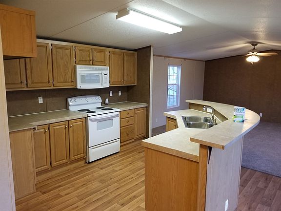 Check out this very affordable 3 bedroom, 2 bath manufactured home! This is on the South side of town in a quiet area. The home was built in 2009 but has new flooring and is almost move in ready! The master bedroom has double walk in closets, a soaker tub, stand alone shower, and double vanity. The kitchen has a lot of cabinet storage and a nice open concept with the kitchen island and living room. This all under $40,000. Hard to find a move in 3 bedroom, 2 bath for this price!