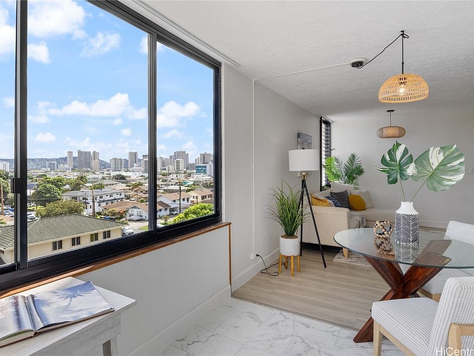 Welcome to the Alexander, a charming boutique condo in Punahou! This 2-bed, 1-bath unit is conveniently located, just 10 mins from downtown Honolulu and 15 mins from the beach. This home underwent recent upgrades, including luxury vinyl plank flooring, new tile, quality kitchen cabinets, a reglazed bathtub, new lighting fixtures, modern appliances, and an upgraded bathroom vanity and mirror. The living space is versatile, with an enclosed lanai perfect for an office, den, playroom, library, or sitting area. Adapt the bedrooms to your liking, with a shoji door-style divider creating two distinct rooms. One covered parking stall in this secure building. The building also boasts a rooftop deck, providing an idyllic spot to soak up the sun or savor delightful barbecues. The Alexander is near Punahou and
