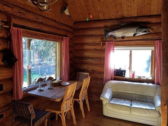 Nice log and cedar cabin completely furnished for sale on over an acre. This is the old Thayer Fish Camp located on one of the best salmon fishing holes at the mouth of beaver Creek on the Kenai River. Cabin has a living room, and a nice master bedroom but can sleep 7 comfortably with extra bunk beds and a loft. There is also a small kitchen and a dining room area and two nice bathrooms. Cabin is furnished and has a washer and dryer, refrigerator and gas stove. Upstairs living space is 1040 square feet. The cabin also has a 720 square foot poured cement basement with a wood shop and storage area. Plus two large chest freezers. Located on a scenic Kenai river front lot with plenty of room for parking and a carport. If interested please reply through Zillow relay mail with a contact number. We will call you to set up a showing. Thanks.