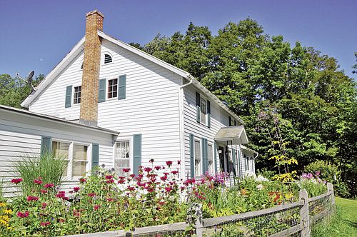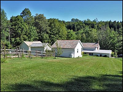 Live the Dream! Country Homestead on 25+ Acres 25.7 ACRES of wonderfully useful property with cascading waters, open tillable agriculture, orchard and woods embrace an intimate compound of idyllic farmhouse and complementary outbuildings in lovely condition, completely useful and proportioned for the site! Truly a manageable property lending itself to 4 BR homestead, studio buildings, garden shed, chicken coop, and barn! Well planned gardens: flowers, berries, fruits and vegetables... this is a fabulous opportunity to make your Vermont Dream Come True... Listen to the water music while you live the dream... and walk to an amazing waterfall from home!