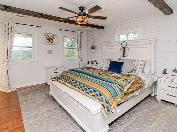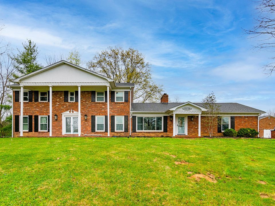 Explore this expansive traditional two-story brick home boasting 5 bedrooms and 3 bathrooms on 7.5 acres of scenic land, just a stone's throw from downtown Lawrenceburg. The covered porch invites you into a grand foyer adorned with a circular staircase, setting the stage for timeless elegance. Step outside onto the new 16' x 52' deck, providing ample space for hosting gatherings and enjoying the picturesque surroundings. Inside, the formal living room has been thoughtfully converted into a first-floor primary bedroom, offering convenience and flexibility. Every window in the home has been replaced and new floors have been put throughout. Venture outdoors to discover eve a 30' x 54' above-ground pool and an abundance of fruit trees including peach, apple, gooseberry, and plum, as well as a 50' x 50' garden requiring no tilling. The property also features a 35' x 50' brick barn, meticulously crafted with 4 horse stalls, an office room, and a spacious loft area for future expansion possibilities or a potential barndominium apartment. With its own water, electricity, and internet hookups, the barn offers endless opportunities for hobbyists or entrepreneurs. Schedule your showing today